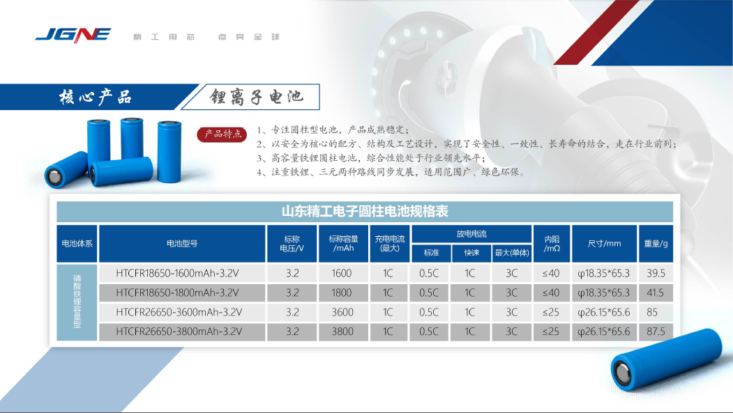 山東精工電子科技有限公司(品牌:精工 JGNE)成立于2008年,是中國航天科工集團旗下的一家高新技術企業(yè)。山東精工JGNE的主要產(chǎn)品:超級電容、鋰離子電池等,致力于新能源產(chǎn)品的研發(fā)應用并使其產(chǎn)業(yè)化。主要客戶包括中船重工、美國通用電器GE、英國PK、德國BMZ等國內外知名企業(yè)。